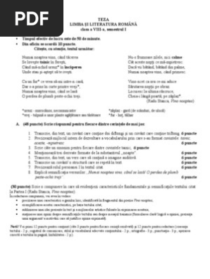 Subiecte teza romana clasa 8 sem 1. Modelele mi au fost trimise de diverși elevi părinți și profesori din românia în grupul meu de facebook qa matematica. Subiectele propuse au în vedere cunoștințele elevilor de clasa a x a privind înțelegerea unui text la prima vedere proza scurtă noțiuni de limbă și comunicare. Teza clasa a 5 a. I clasa a 8 a cu subiect tip en.